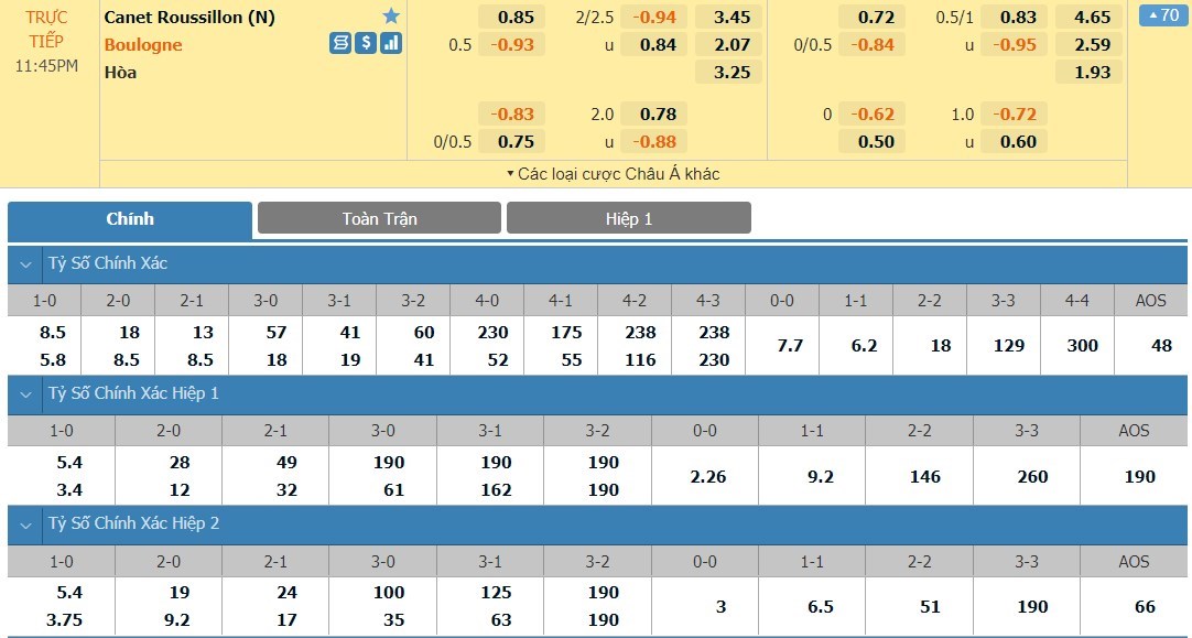 Tip kèo tỷ số hiệp 1: Canet Roussillon 1-1 Boulogne