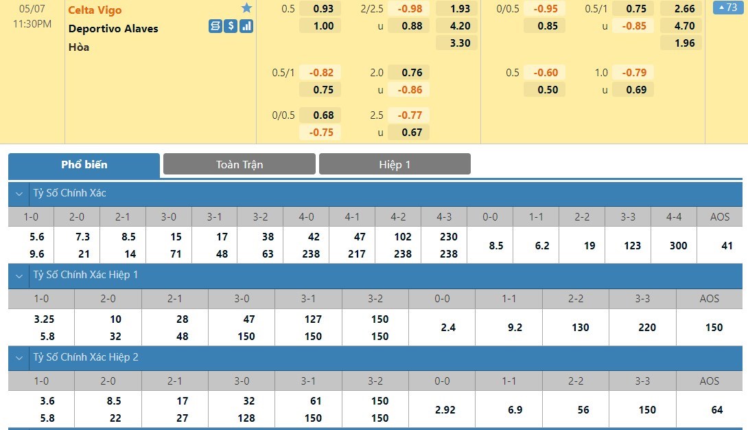 Tip kèo tỷ số hiệp 1: Celta Vigo 0-0 Deportivo Alaves