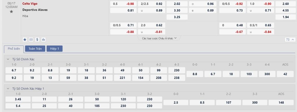 Tip kèo tỷ số hiệp 1: Celta Vigo 0-0 Deportivo Alaves