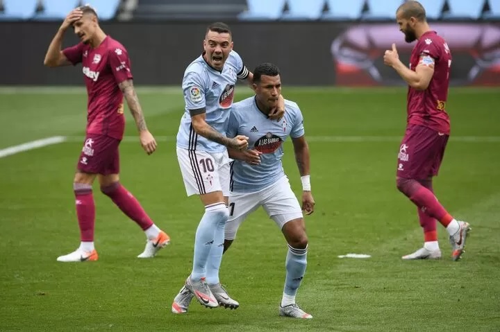 Celta Vigo: Guaita; Mingueza, C Dominguez, U Nunez; Perez, Jailson, Beltran, Alvarez; Aspas, Douvikas, Swedberg