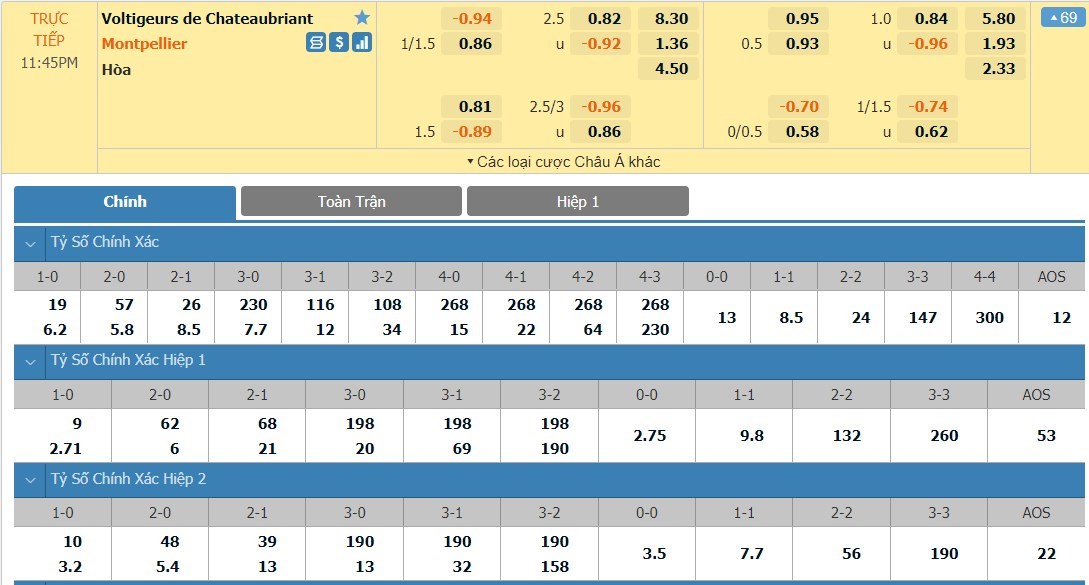 Tip kèo tỷ số hiệp 1: Chateaubriant 0-2 Montpellier