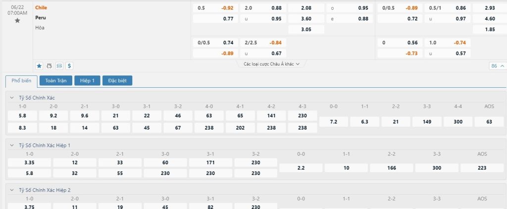 Tip kèo tỷ số hiệp 1: Chile 0-0 Peru
