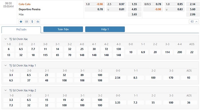 Tip kèo tỷ số hiệp 1: Colo Colo 0-0 Deportivo Pereira