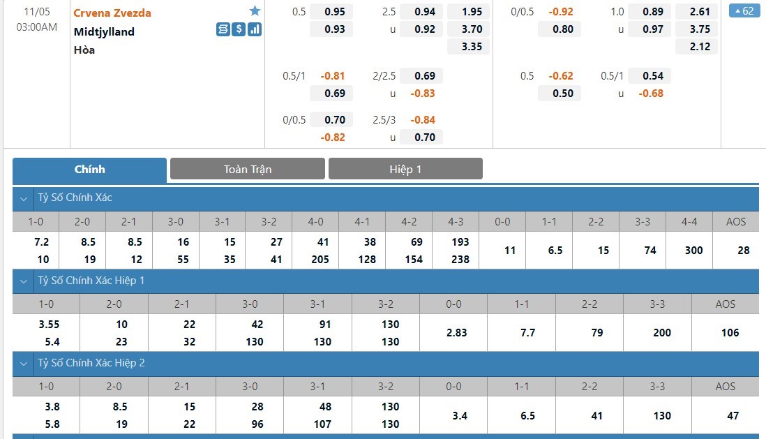 Tip kèo tỷ số hiệp 1: Crvena Zvezda 0-0 Midtjylland