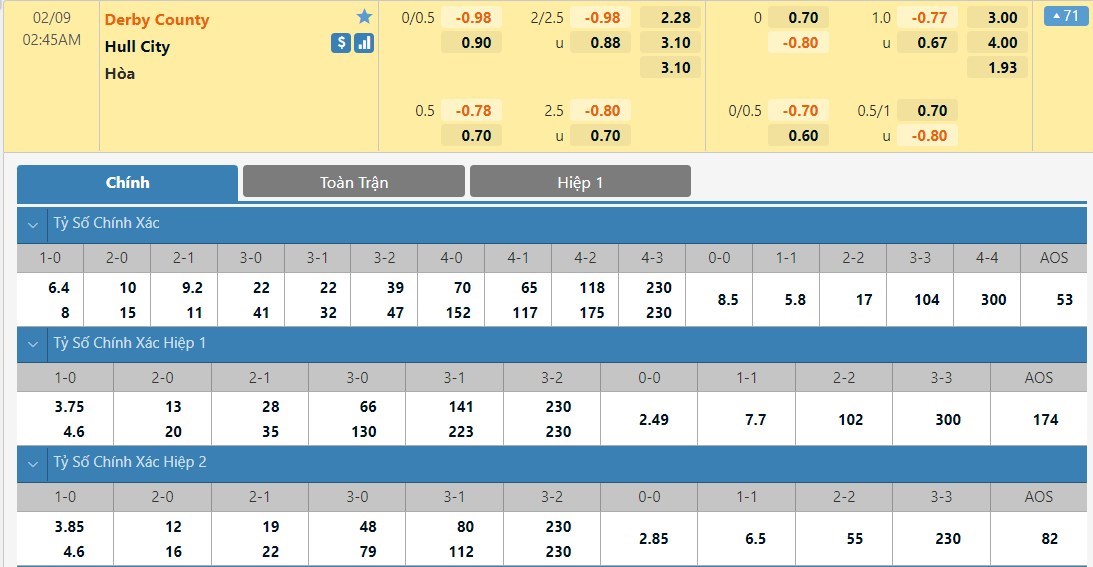 Nhìn vào thành tích đối đầu giữa hai đội trong 10 lần chạm trán gần nhất thì ưu thế đang nghiêng về Derby khi họ giành chiến thắng 7 trận, hòa 1 và chỉ thua 2 trận. Cộng thêm lợi thế sân nhà thì người chơi có thể mạnh dạn đặt cược Derby kèo đấu này. Kèo châu Á hiện tại ấn định Derby chấp mốc tỷ lệ 1/4 trái, đầu tư chủ nhà Derby là nước đi nên ưu tiên.