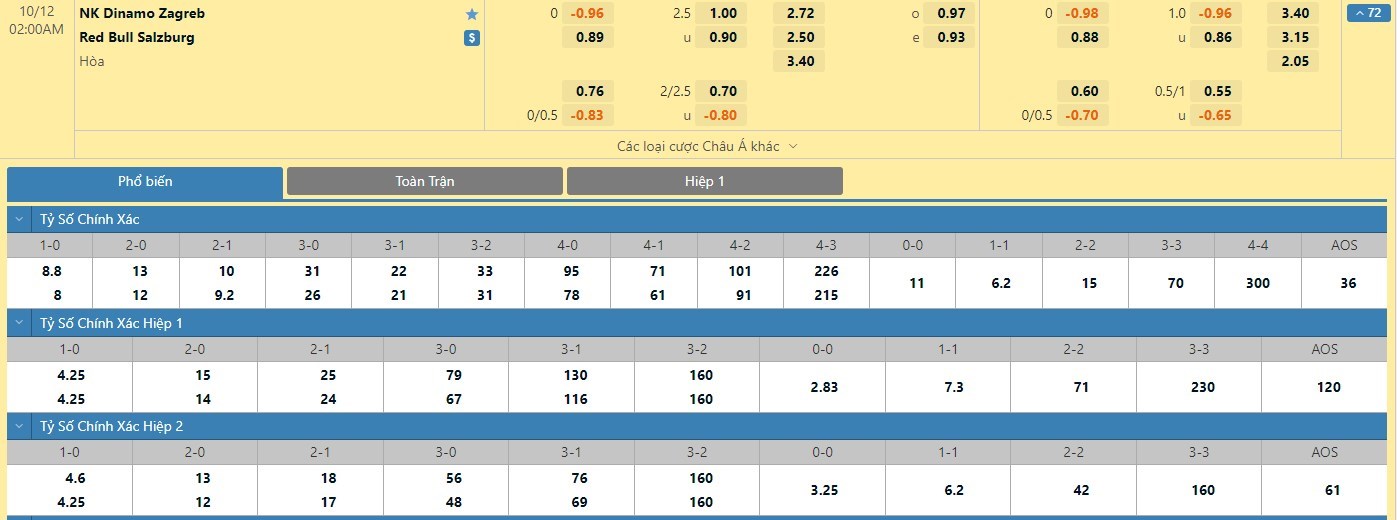 Tip kèo tỷ số full time: Dinamo Zagreb 1-0 Salzburg