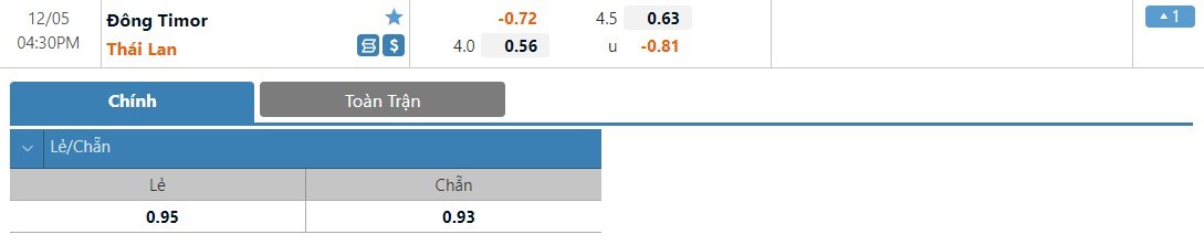 Tip kèo Châu Âu hiệp 1: Chọn Thái Lan