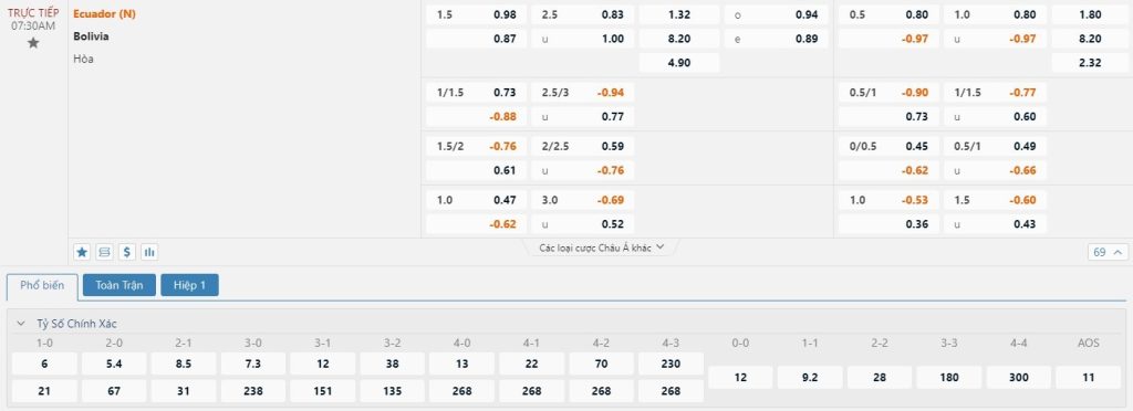 Tip kèo tỷ số hiệp 1: Ecuador 2-0 Bolivia