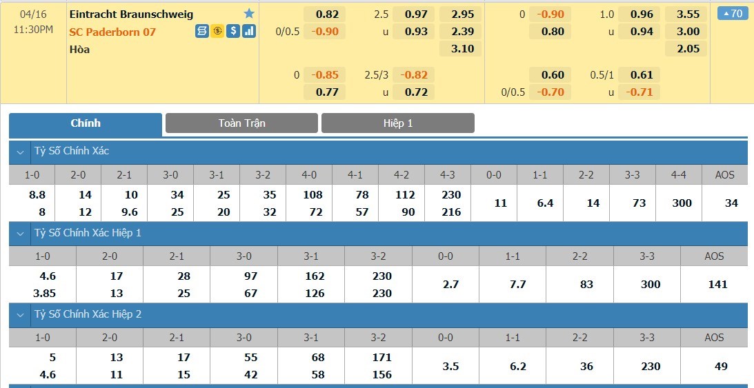Tip kèo tỷ số hiệp 1: Eintracht Braunschweig 1-1 Paderborn