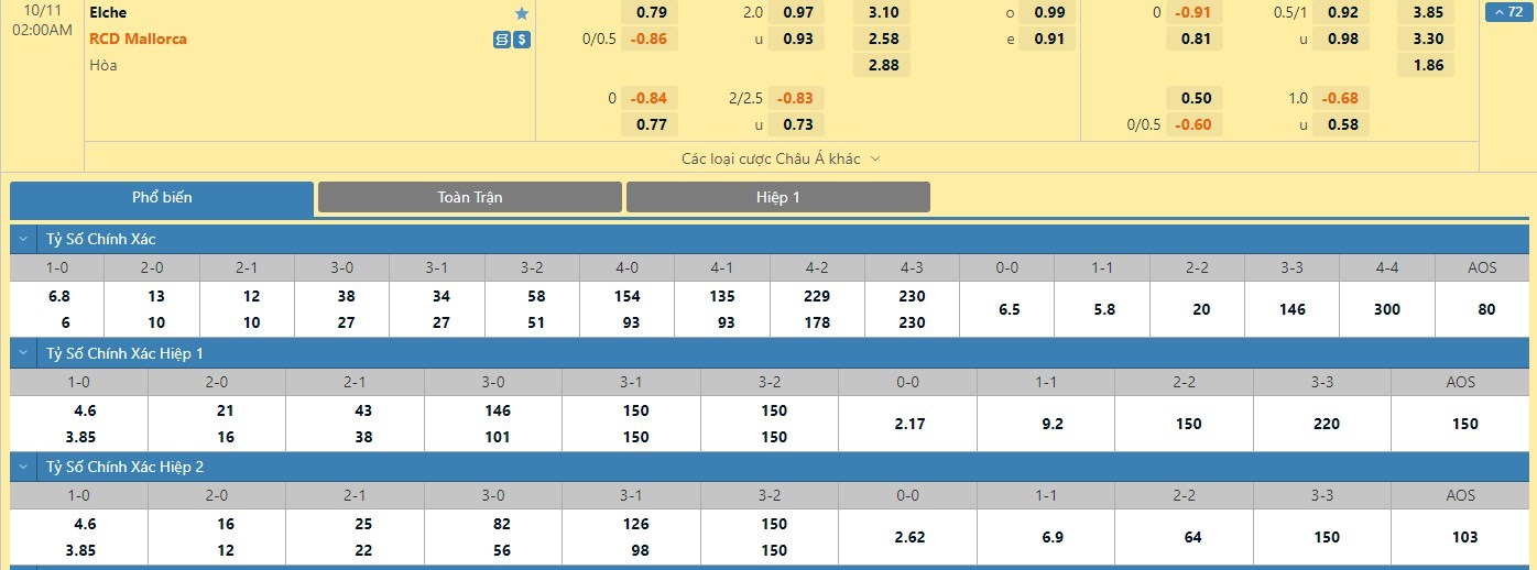 Trong 5 trận đấu gần nhất đôi bên đụng độ trực tiếp, nếu như Elche đã có 2 trận đấu mang về được cho mình ít nhất là 1 bàn thắng trong hiệp đấu đầu tiên thì Mallorca cũng chỉ có 1 lần làm được điều này trong 45 phút đầu tiên. Với kèo hiệp 1 ở trận đấu này thì người chơi nên tin tưởng vào kết quả hòa trước khi hai đội bước vào giờ nghỉ giữa hiệp.