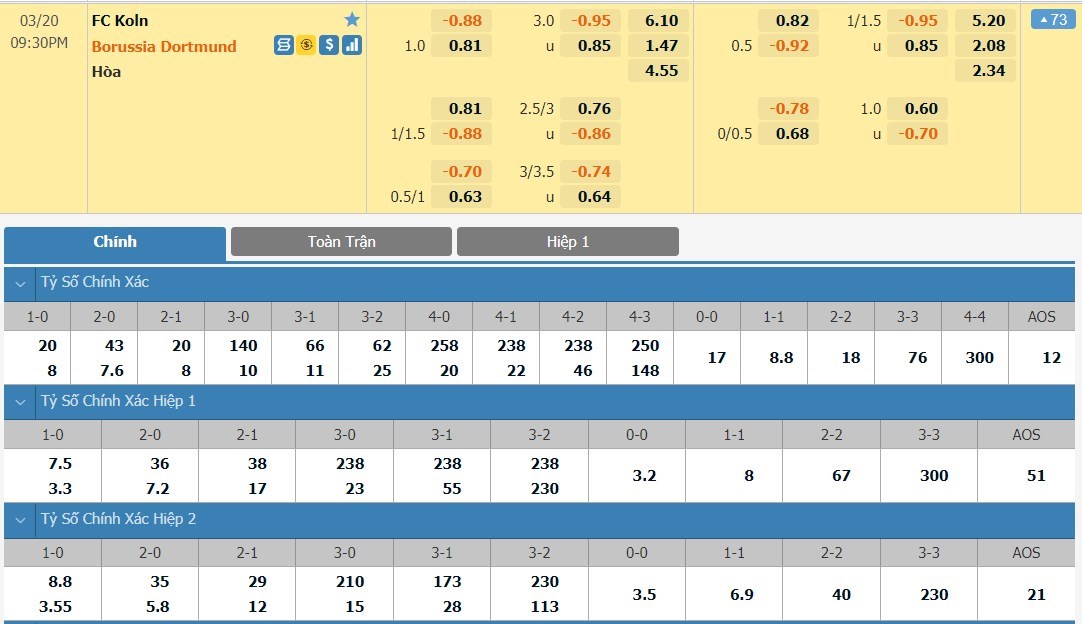 Giữa hai đội là một khoảng cách lớn về mặt điểm số. Trong khi FC Koln đang xếp thứ 14 trên BXH Bundesliga cùng 22 điểm thì Borussia Dortmund đứng thứ 5 với 42 điểm. Dĩ nhiên, chất lượng đội hình của FC Koln càng không thể nào đem ra so bì với Borussia Dortmund. Nhà cái có lý khi xếp đội khách ở thế chiếu trên chấp ngược chủ nhà mốc chấp -1. Nhìn vào cách ra kèo này thì có thể thấy được đội ngũ chuyên môn không những tin vào chiến thắng cho đội bóng vùng Rhur mà còn nhận định khả năng cao sẽ là thắng lợi đậm đà được Halland cùng các đồng đội tạo ra. Ở vòng 25 Bundesliga vừa qua, Borussia Dortmund có chiến thắng 2-0 trước Hertha Berlin và đây là lúc tinh thần của họ vô cùng thoải mái khi trước đó đã vượt qua Sevilla để góp mặt tại vòng tứ kết Champions League.