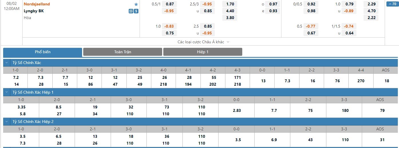 FC Nordsjaelland được nhà cái xếp ở thế cửa trên cùng mốc chấp -3/4 trái. Tồn tại nhiều lý do để giới mộ điệu đặt trọn niềm tin vào đội chủ nhà kèo đấu này. Trong cả 3 trận đấu gần nhất phải chơi trên sân khách thì Lyngby đều chịu cảnh tay trắng. Bên cạnh đó, lịch sử đối đầu cũng đứng về phía FC Nordsjaelland. Xét trong 10 lần gặp gỡ gần nhất giữa hai đội thì FC Nordsjaelland chiếm ưu thế với 5 chiến thắng, 4 trận hòa và chỉ 1 thắng lợi dành cho Lyngby. Từ những gì đã phân tích thì lựa chọn cửa trên là phương án đầu tư tối ưu.