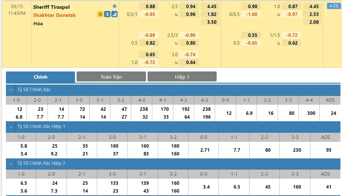 Tip kèo tỷ số hiệp 1: FC Sheriff 0-0 Shakhtar Donetsk