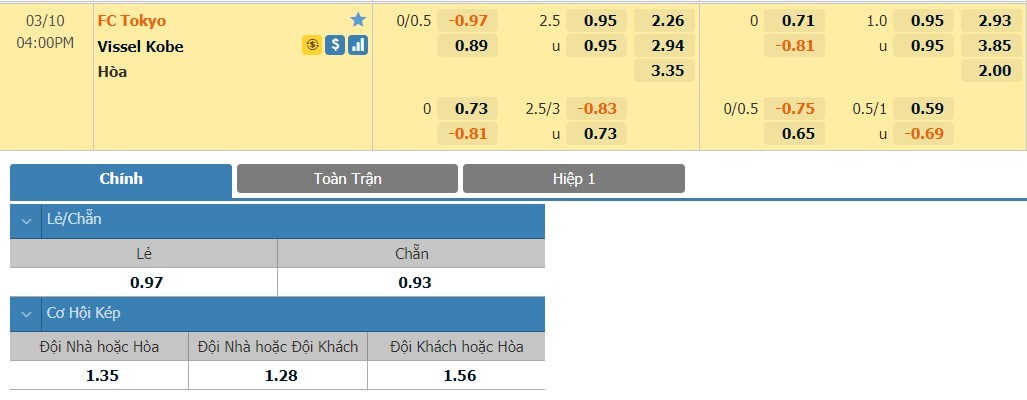 Tip kèo tỷ số hiệp 1: FC Tokyo 0-0 Vissel Kobe