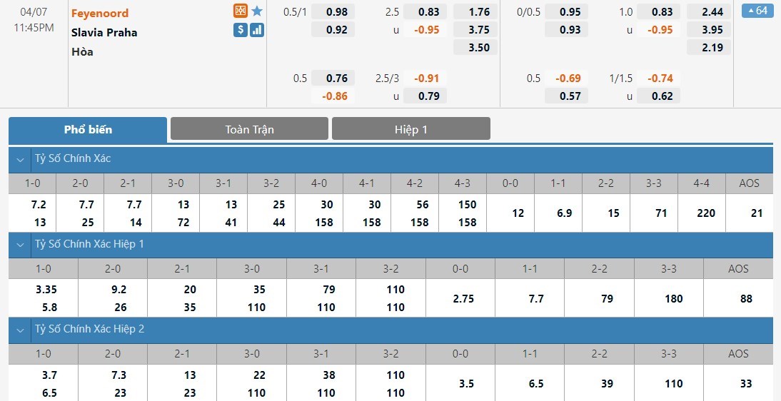 Cả 2 cuộc đụng độ giữa Feyenoord và Slavia Praha ở trong quá khứ đều xuất hiện không ít các pha lập công. Thậm chí cả 2 trận đấu ấy đều khép lại với từ 3 bàn thắng trở lên, con số có thể nói là hết sức ấn tượng. Vậy nên ở kèo tài xỉu thì người chơi vẫn nên ưu tiên bắt tài để có cơ hội ăn cao hơn.