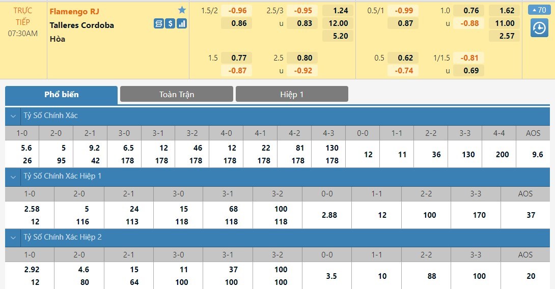 Tip kèo tỷ số hiệp 1: Flamengo 1-0 Talleres
