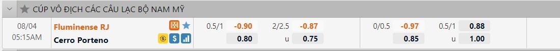 Tip kèo tỷ số hiệp 1: Fluminense 1-0 Cerro Porteno