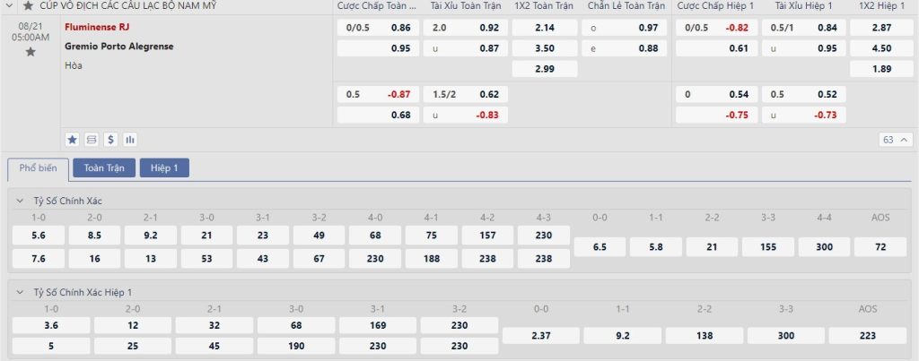 Tip bóng đá hôm nay lúc 05h00 ngày 21/08/2024 – Fluminense vs Gremio – Copa Libertadores