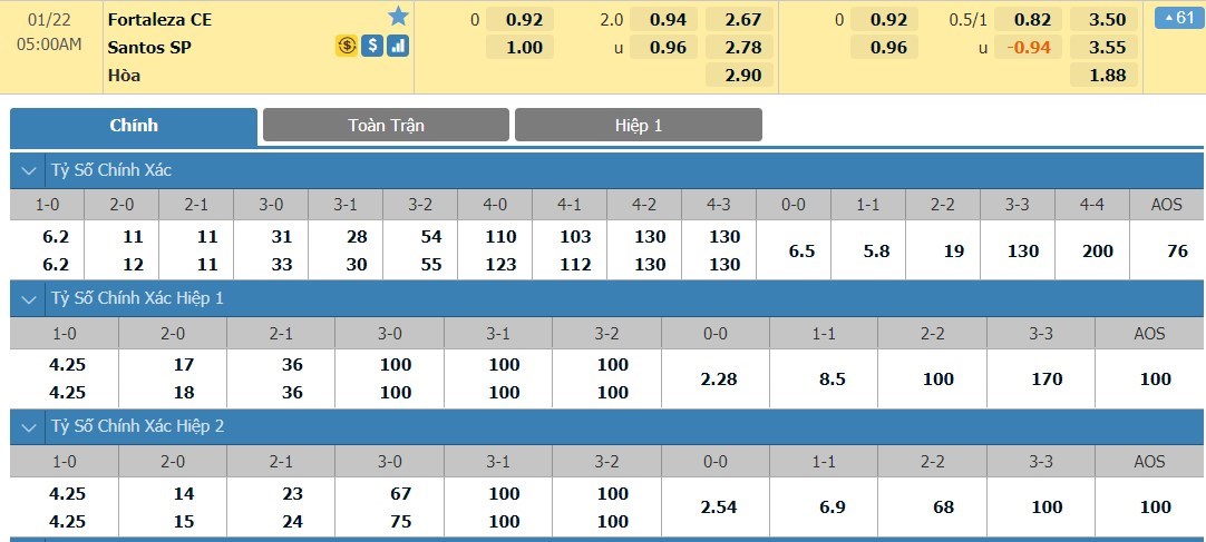 Trong 3 lần đối đầu gần nhất giữa hai đội, Fortaleza đều làm khó được Santos. Kết quả khá bất ngờ khi Fortaleza giành được 1 chiến thắng và 2 trận hòa. Chính vì thế mà không ngạc nhiên khi nhà cái đưa ra mốc tỷ lệ đồng banh cho cuộc đụng độ giữa hai đội tại vòng 31 giải VĐQG Brazil sắp tới.