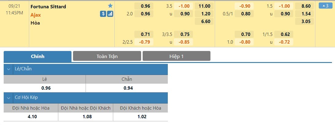 Tip kèo tỷ số hiệp 1: Fortuna Sittard 0-2 Ajax