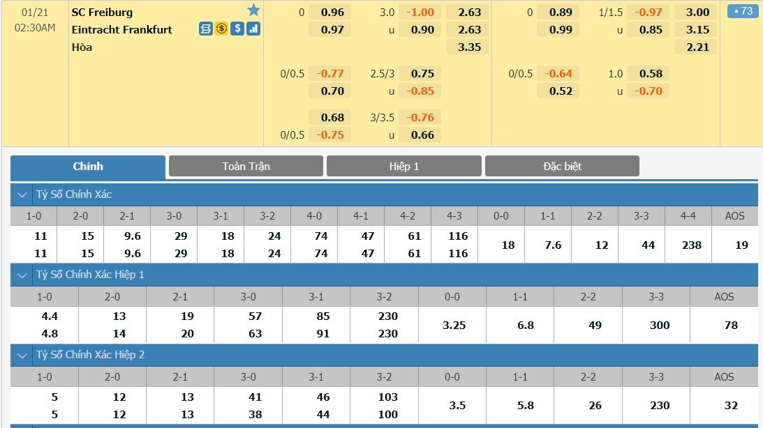Tỷ lệ kèo chấp của trận đấu tới sẽ là hoàn toàn đồng banh dành cho đôi bên. 5 lần gần nhất làm khách trên sân của Freiburg, Eintracht Frankfurt chỉ thắng 1, hoà 1 và thua tới 3. Tại sân khách, đội bóng này cũng chơi rất bất ổn ở mùa này có 3 thắng, 3 hoà và 2 thua. Chính vì thế, cơ hội có điểm của đội chủ nhà Freiburg là rất lớn, tỷ lệ chủ nhà đồng banh được đánh giá sẽ là ô cược rất an toàn.