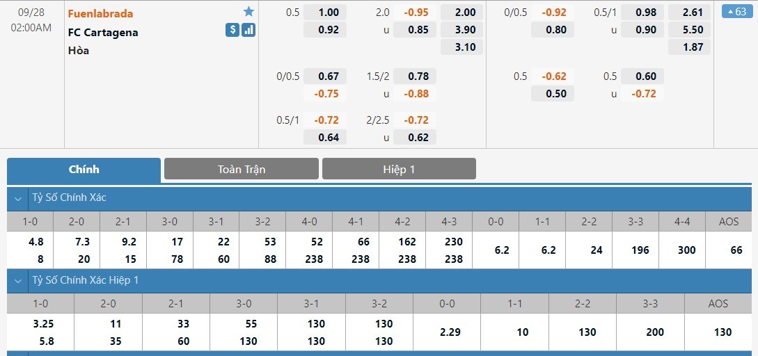 Tip kèo tỷ số full time: Fuenlabrada 1-0 Cartagena