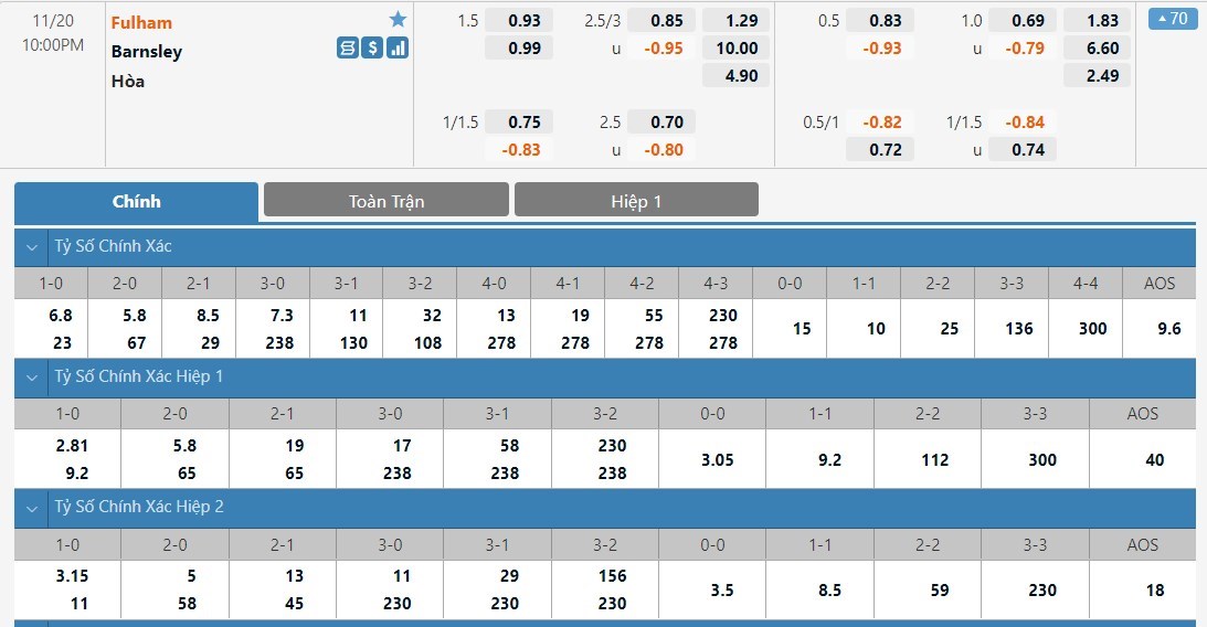 Giành chiến thắng trước Fulham đã khó để vượt qua họ ngay trên sân nhà thì còn là nhiệm vụ khó hơn gấp trăm lần. Cần phải biết rằng trước khi tiếp đón Barnsley thì đoàn quân của Marco Silva đã trải qua chuỗi 4 trận thắng liên tiếp trên sân nhà. Vì vậy việc Barnsley có điểm ở cuộc đối đầu tới là gần như không thể xảy ra. Mặc dù chỉ đứng ở vị trí thứ 2 trên BXH tổng nhưng riêng ở mặt trận tấn công thì chủ nhà mới là số 1 của Championship thời điểm hiện tại. Thống kê cho thấy sau 17 lần ra sân họ đã mang về cho mình tới 44 bàn thắng. Thành tích này thậm chí còn nhiều hơn đội đầu bảng tới 13 bàn. Do đó ở kèo tài xỉu thì tài vẫn sẽ là lựa chọn khôn ngoan.