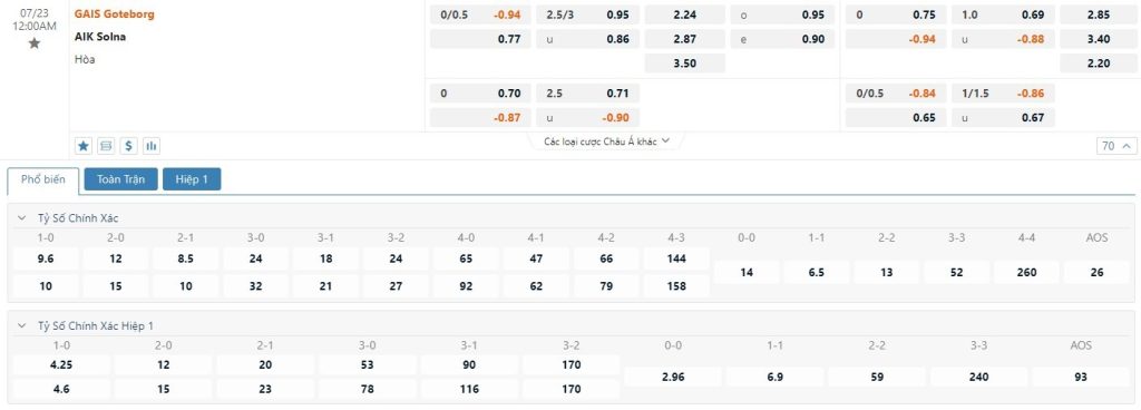 Mặc dù GAIS vẫn là đội bóng được giới chuyên môn đánh giá là đội chiếu trên với mốc chấp -1/4 trái nhưng rõ ràng là phong độ đi xuống trong quãng thời gian gần đây của đội bóng này đã khiến họ đánh mất đi niềm tin nơi người hâm mộ. Chưa kể, thành tích đối đầu cũng đang chống lại GAIS. Nhìn lại quá khứ thì GAIS được xem là con mồi ưa thích của AIK. Bằng chứng là trong 19 lần gặp nhau trước đây, AIK thắng GAIS tới 11 lần và chỉ thua có 2 trận.