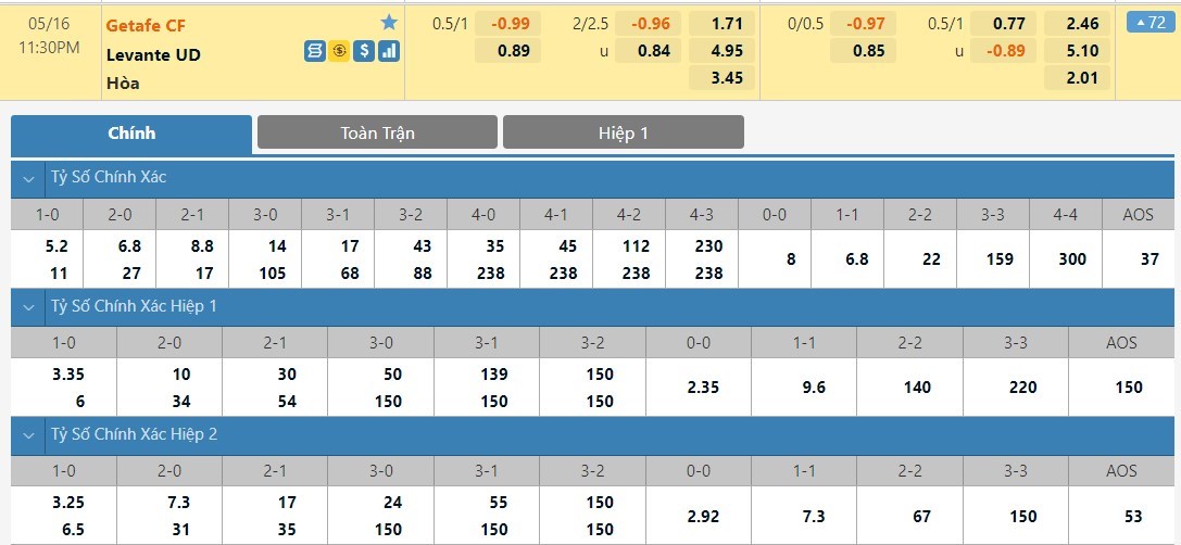 Tip kèo tỷ số hiệp 1: Getafe 0-0 Levante