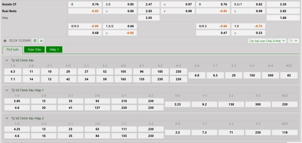 Tip bóng đá Getafe vs Real Betis, hôm nay 24/02/2025