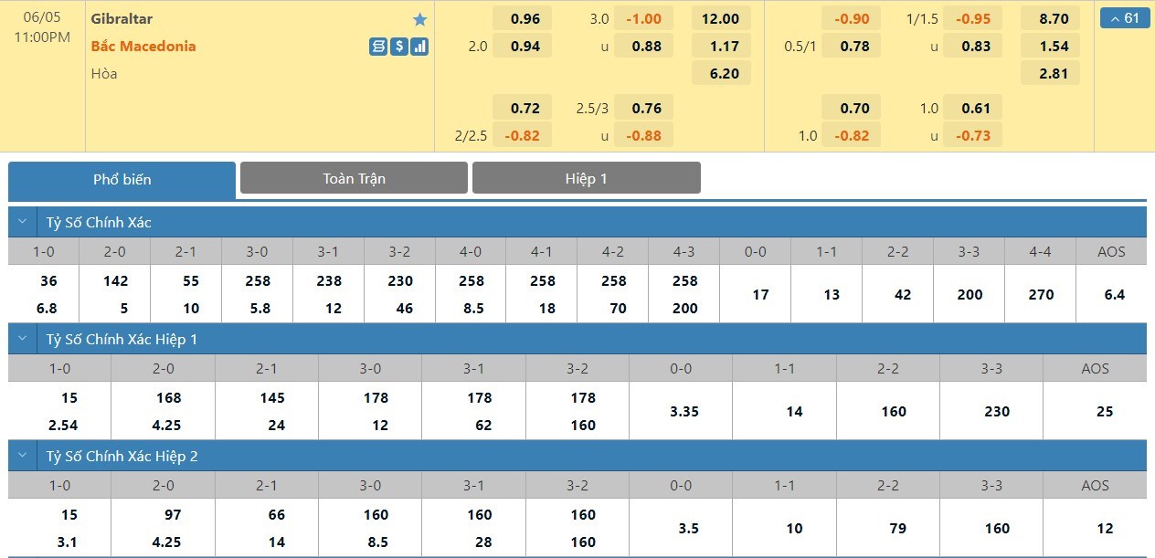 Tip kèo tỷ số hiệp 1: Gibraltar 0-2 Bắc Macedonia