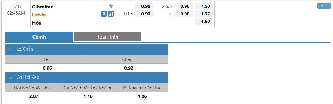 Tip kèo tỷ số hiệp 1: Gibraltar 0-2 Latvia