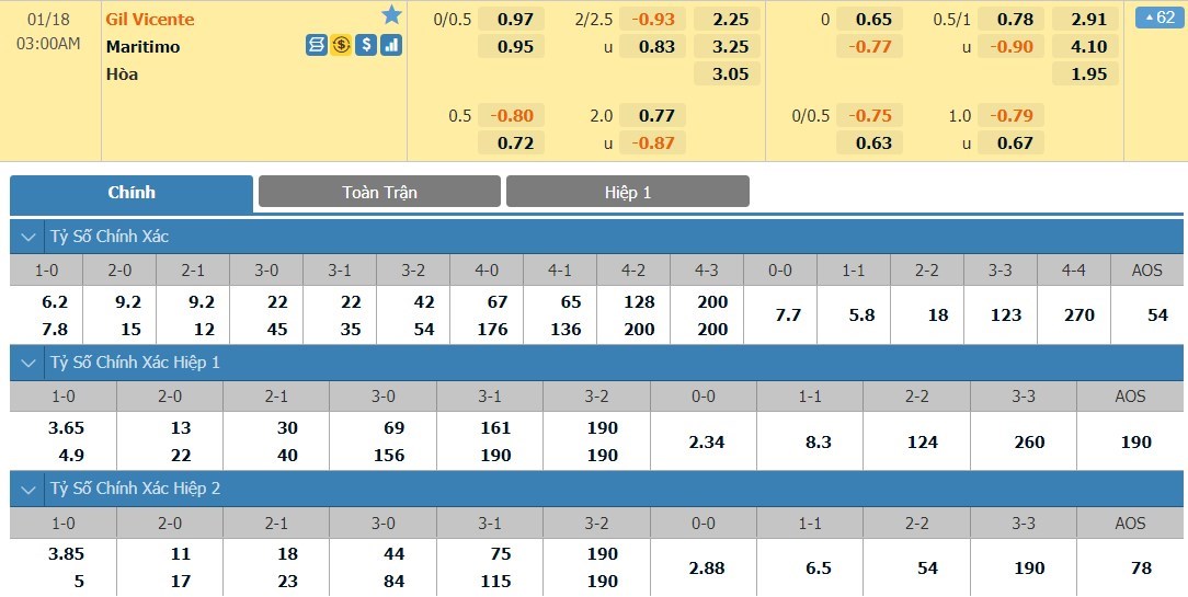 Tip kèo tỷ số hiệp 1: Gil Vicente 1-0 Maritimo