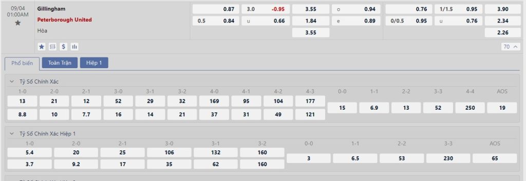 Tip kèo tỷ số hiệp 1: Gillingham 0-0 Peterborough