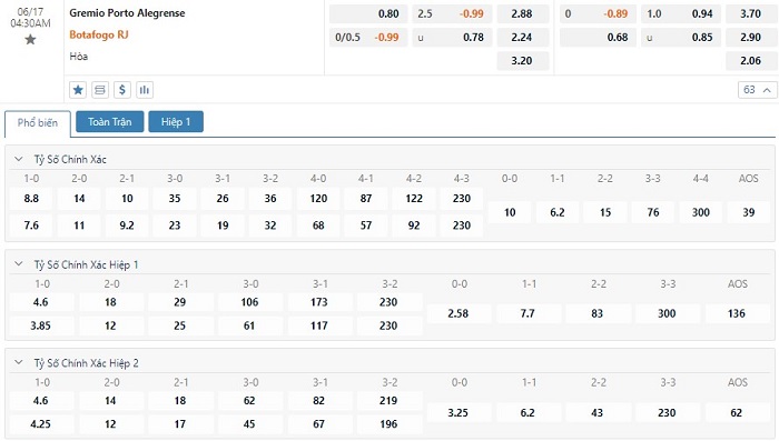 Không có gì bất ngờ với việc nhà cái xếp Botafogo là đội cửa trên ở trận này với mốc chấp -1/4 trái bất chấp việc họ là những người chịu bất lợi về yếu tố sân bãi. Trong 6 trận gần nhất chơi trên sân khách, Botafogo tạo nên thành tích bất bại với 4 chiến thắng và 2 trận hòa. Dù nhìn lại quá khứ, thành tích đối đầu đang nghiêng về phía Gremio nhưng xét theo tình hình thực tế thì Botafogo mới là những người đang nắm cơ hội chiến thắng cao hơn.
