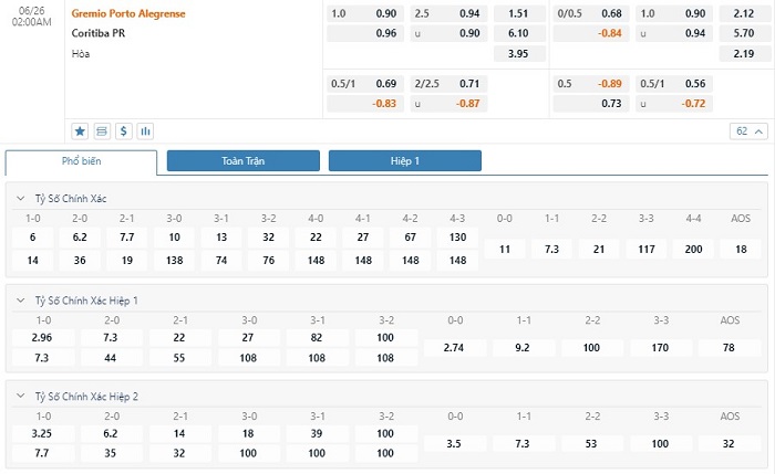 Tip bóng đá Gremio vs Coritiba, hôm nay 26/06/2023