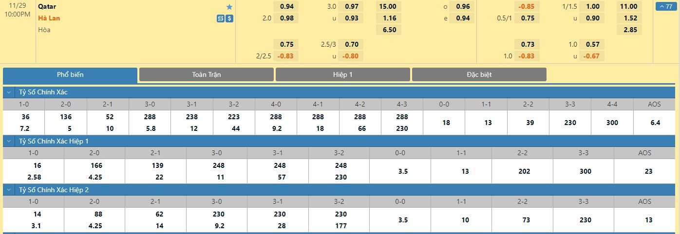 Trong 5 trận đấu gần nhất, Hà Lan đã có 2 trận đấu mang về được cho mình ít nhất là 1 bàn thắng trong hiệp đấu đầu tiên trong khi Qatar đã có 3 lần làm được điều này trong 45 phút đầu tiên. Với tỷ lệ kèo hiệp 1 ở trận đấu này được đưa ra là -3/4 trái thì người chơi nên tin tưởng vào Hà Lan trận này.