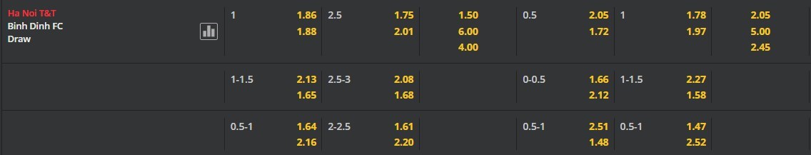 Tip kèo tỷ số hiệp 1: Hà Nội 1-0 Bình Định