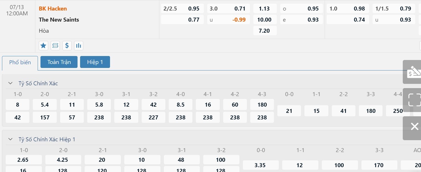 Tỷ lệ kèo ở cuộc đối đầu này được đưa ra là -2 1/4 trái nghiêng về Hacken và điều này là không có gì phải bàn cãi quá nhiều. Màn trình diễn của Hacken trong quãng thời gian vừa qua là rất ổn và hứa hẹn sẽ tiếp tục áp đảo một TNS có đẳng cấp thấp hơn ở trận đấu này. Các nhà đầu tư nên tin tưởng vào đội chủ nhà ở trận này để mang về cơ hội thắng kèo cao hơn.