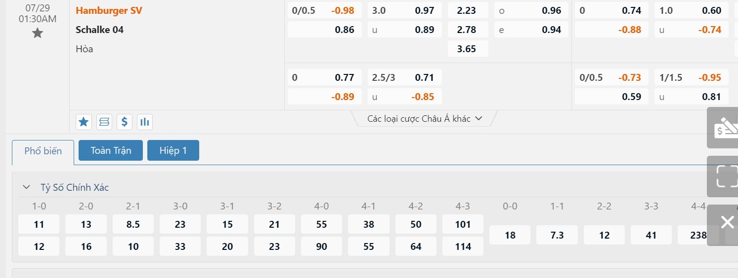 Hamburg chơi trên sân nhà và họ là những người nhận được đánh giá cao hơn từ phía đội ngũ chuyên môn với mốc chấp -1/4 trái. Đội bóng chủ nhà sẽ cần phải tận dụng triệt để ưu thế sân bãi nếu như muốn thu về một kết quả tích cực trước Schalke 04. Kết quả ở những trận đấu giao hữu trước thềm mùa giải mà Hamburg trải qua là không tốt chút nào. Họ đã có 3 trận đấu kể từ tháng 7 đến nay và những gì mà Hamburg làm được chỉ dừng lại ở 1 trận hòa và thua 2 trận. Trong khi đó, Schalke 04 giành được 2 chiến thắng, 2 trận hòa và chỉ thua đúng 1 trận trong 5 trận đấu trở lại đây. Xét trên phương diện thành tích đối đầu giữa hai đội trong 10 lần gặp gỡ gần nhất, thành tích đang cân bằng khi mỗi bên có 4 chiến thắng, còn lại là 2 trận hòa. Với những gì đã phân tích thì người chơi nên lựa chọn ô cược đội khách trận này.