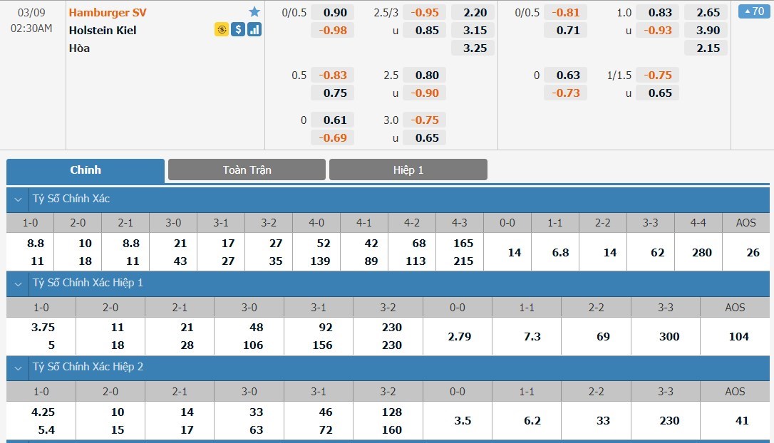 Tip kèo tỷ số hiệp 1: Hamburger 0-0 Holstein Kiel