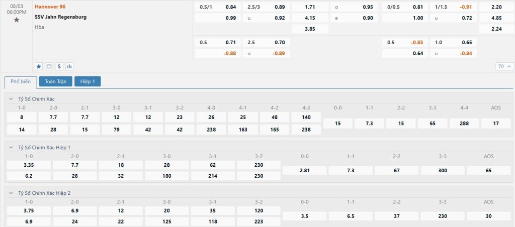 Tip kèo tỷ số hiệp 1: Hannover 96 0-0 Jahn Regensburg