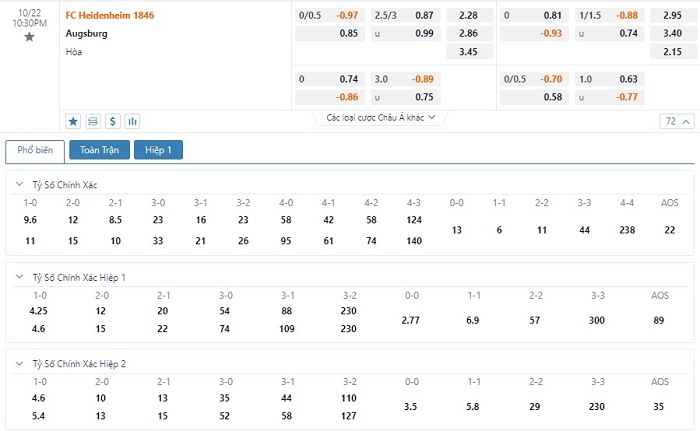 Tip kèo tỷ số hiệp 1: Heidenheim 0-0 Augsburg