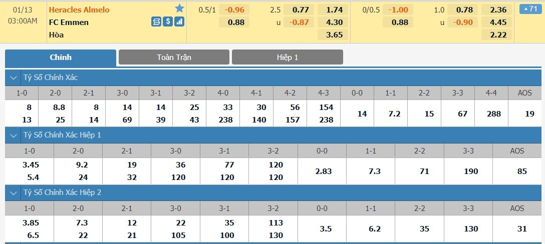 Tip kèo tỷ số hiệp 1: Heracles 2-0 FC Emmen