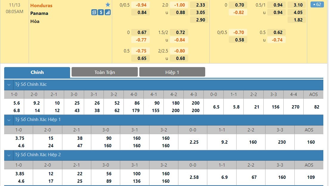Tip kèo tỷ số hiệp 1: Honduras 0-0 Panama