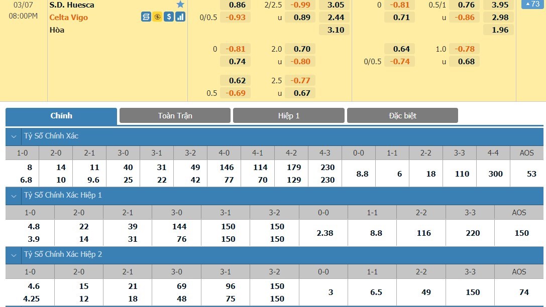 Tip kèo tỷ số hiệp 1: Huesca 0-0 Celta Vigo