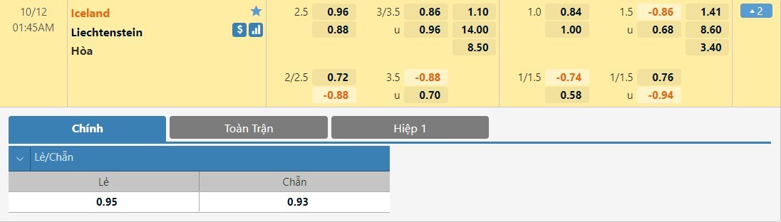 Tip kèo tỷ số hiệp 1: Iceland 2-0 Liechtenstein
