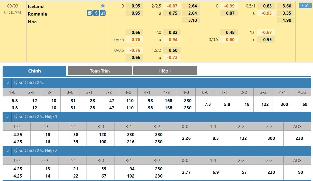 Tip kèo tỷ số hiệp 1: Iceland 0-0 Romania