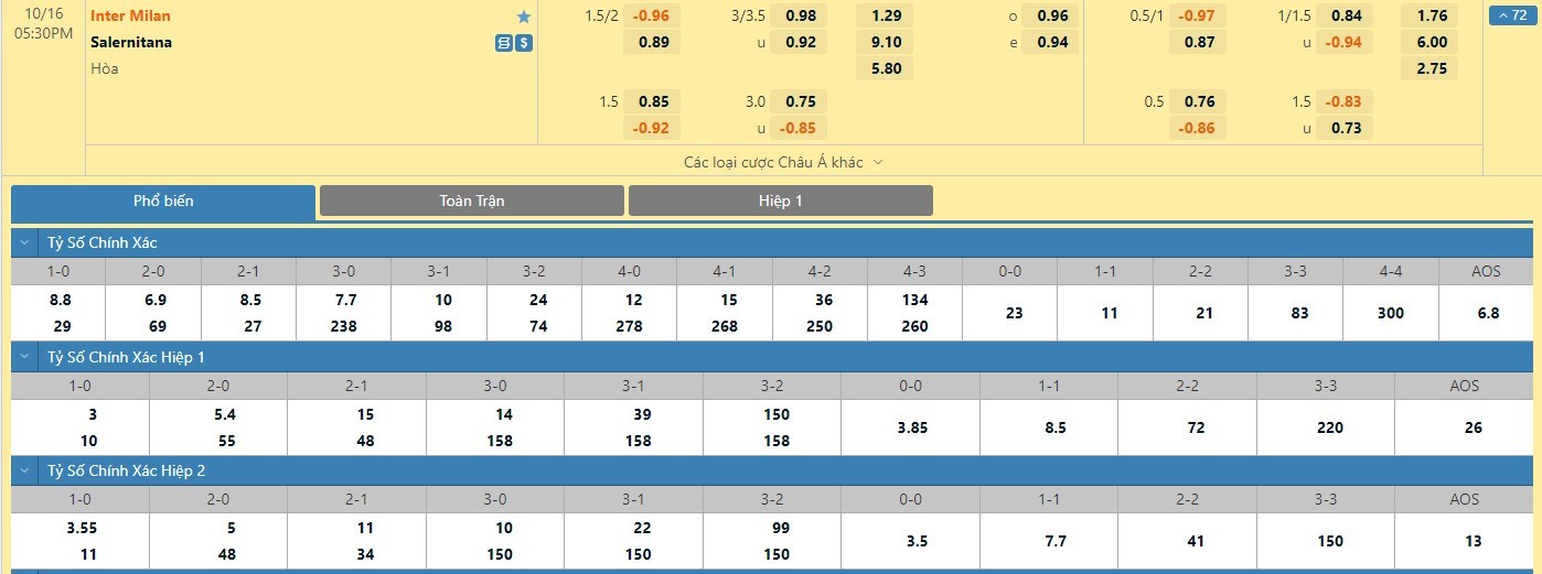 Trong 5 trận đấu gần nhất đôi bên, nếu như Inter Milan đã có 4 trận đấu mang về được cho mình ít nhất là 1 bàn thắng trong hiệp đấu đầu tiên thì Salernitana có 3 lần làm được điều này trong 45 phút đầu tiên. Với tỷ lệ kèo hiệp 1 ở trận đấu này được đưa ra là -3/4 trái thì người chơi nên tin tưởng vào đội chủ nhà trận này.