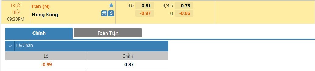 Tip kèo tỷ số hiệp 1: Iran 2-0 Hồng Kông